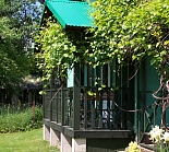 Między domem, a rzeką znajduje się ogród z altaną i piecem, boisko do siatkówki i basen dla dzieci.